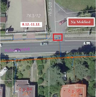 oznamujeme, že ve dnech 8.-11.12.2025 bude z důvodu výkopových prací na propojení vodovodu a kanalizace pro dopravu uzavřena křižovatka ulic Na Moklině a Kutnohorská. Objízdná trasa do ulice Na Moklině je ulicemi Školní a Vysoká.