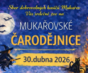 30.4.2026Sbor dobrovolných hasičů Mukařov vás srdečně zve na oslavu filipojakubské noci! Připravte si kostýmy a hlučné nástroje a přijďte si užít odpoledne plné tradic, soutěží a zábavy pro celou rodinu na tradičních Mukařovských čarodějnicích.