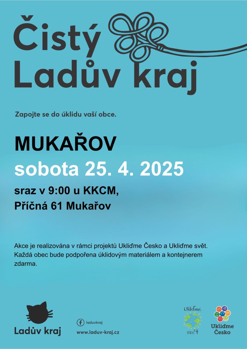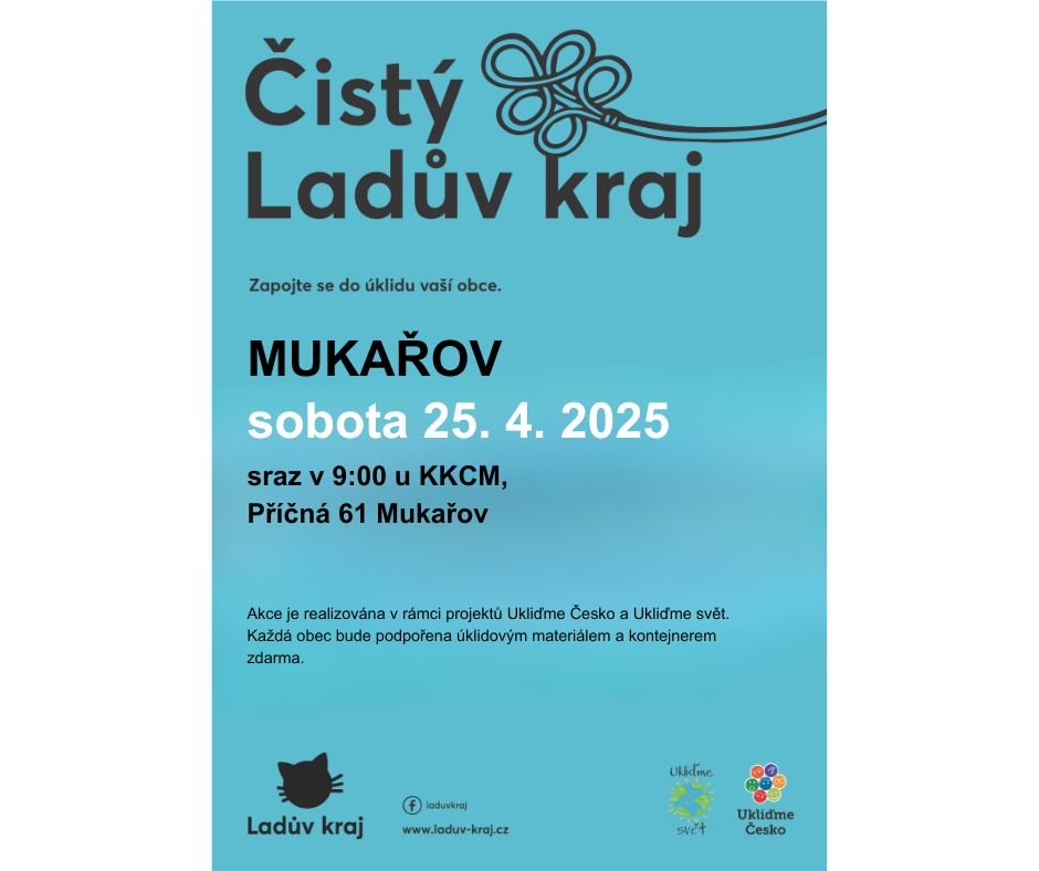 V sobotu 25. dubna proběhne v Mukařově tradiční úklidová akce Čistý Ladův kraj, kterou pořádá Kulturní a komunitní centrum Mukařov (KKCM).