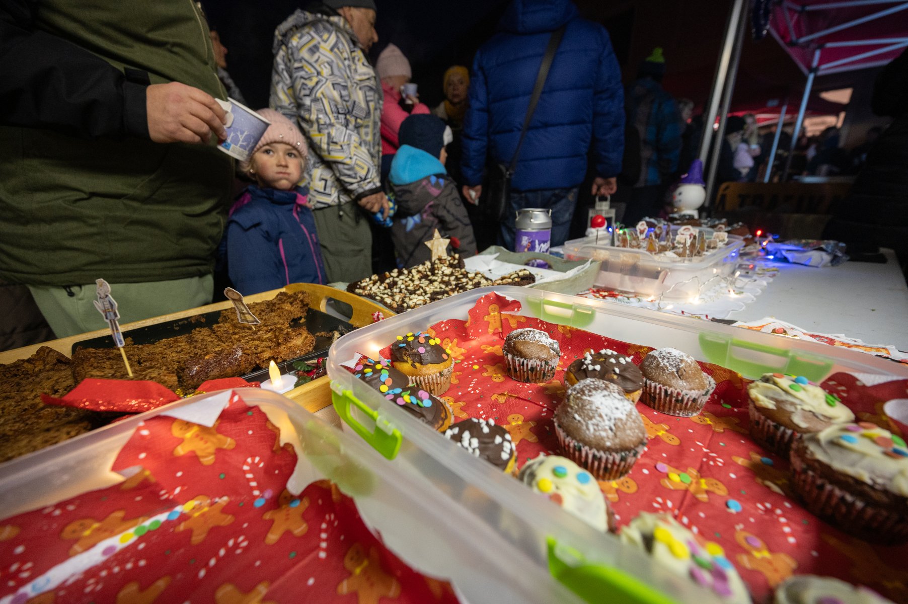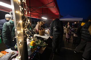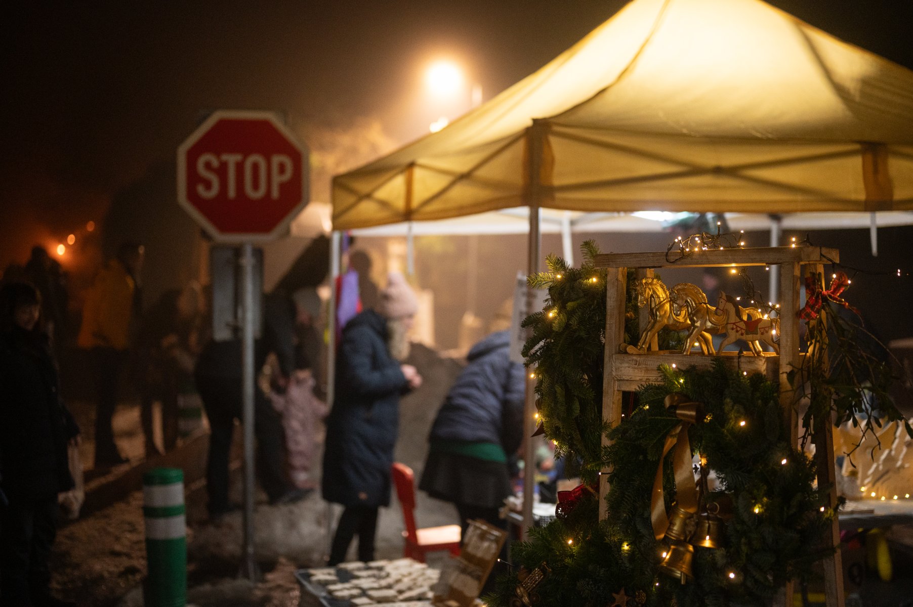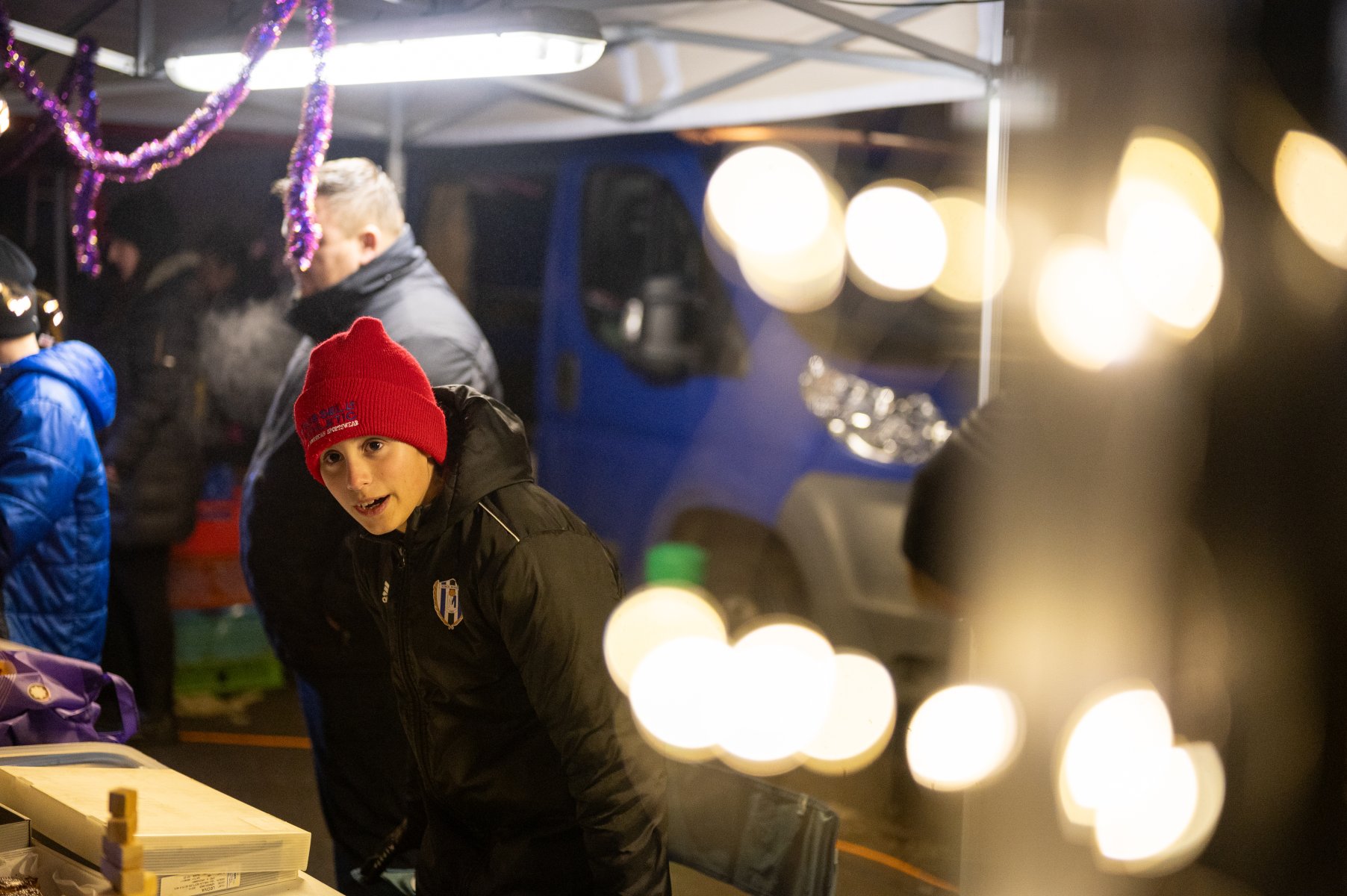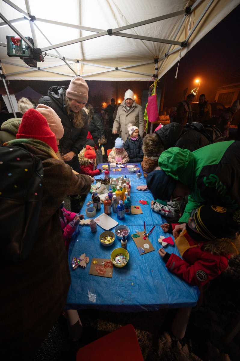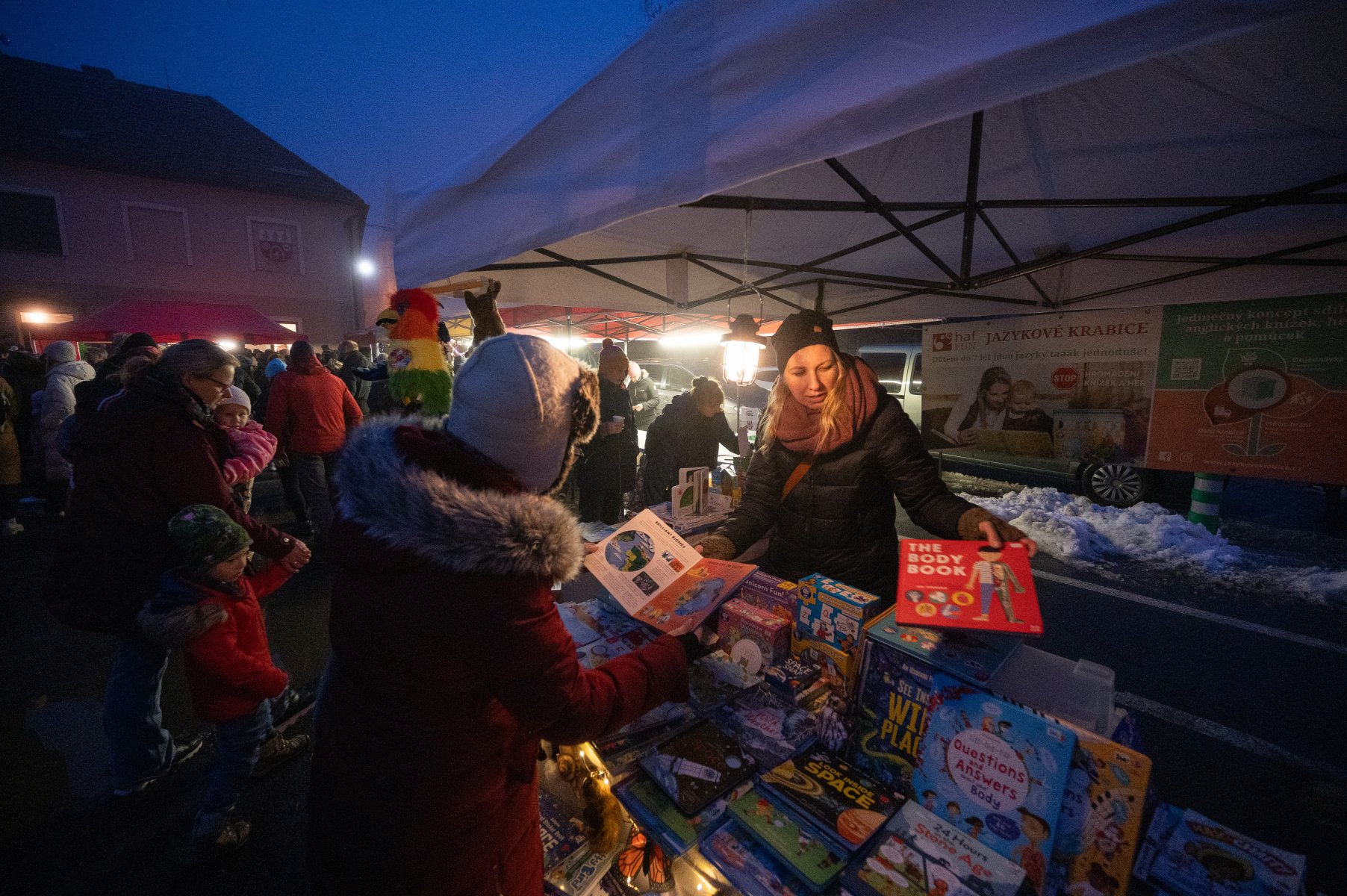 Na návsi se mezitím usadili stánkaři se svými krásnými výrobky – keramika, adventní věnce, vánoční ozdoby i další dekorace dodávaly prostoru tu pravou předvánoční atmosféru. Návštěvníci si mohli zakoupit také knihy z pestré nabídky anglické literatury pro děti, teplé čepice a šály, a děti si s radostí tvořily vlastní dřevěnou vánoční dekoraci.