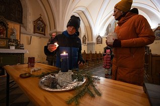 Vrcholem podvečera bylo slavnostní zapálení první adventní svíčky, kterého se ujal pan farář Konstantin Petr Mikolajek a doprovodil jej krásnými, hřejivými slovy. Následně promluvila také naše paní starostka Hana Zákoucká, ředitelka MŠ Mukařov Zuzana Tůmová a ředitel ZŠ Mukařov Daniel Barták.