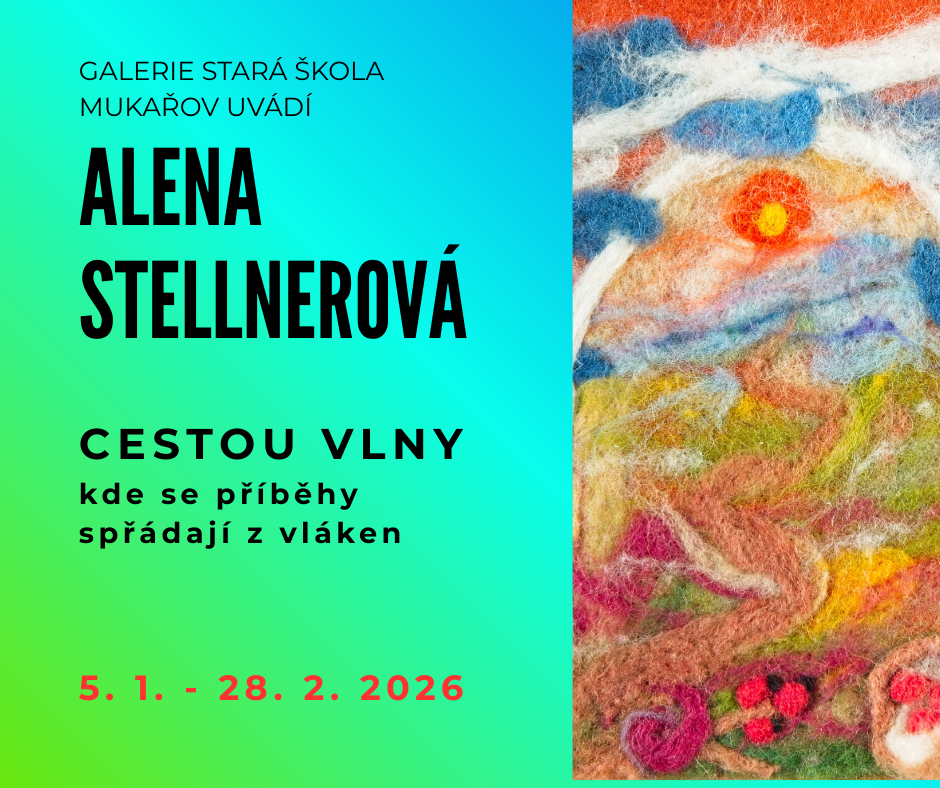 Výstava Cestou vlny představuje tvorbu Aleny Stellnerové, která ve svých obrazech pracuje s netradičním výtvarným materiálem – vlnou. Ta se stává nejen nositelem struktury, ale i prostředkem vyprávění. Jednotlivá vlákna se propojují, vrství a vytvářejí měkký, klidný prostor, jenž působí smyslově a meditativně.