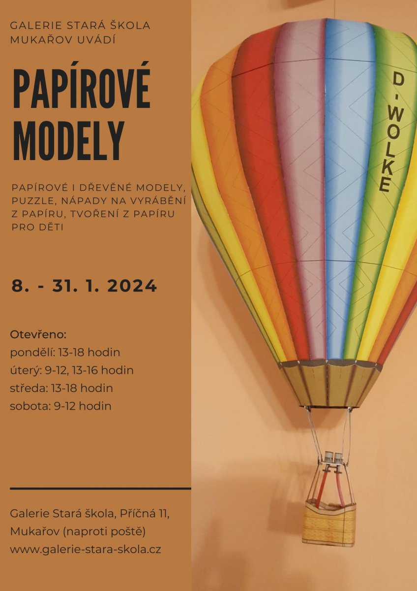 Na výstavě budou papírové i dřevěné modely, puzzle a najdete zde i nápady na vyrábění z papíru. Těšíme se na návštěvu.